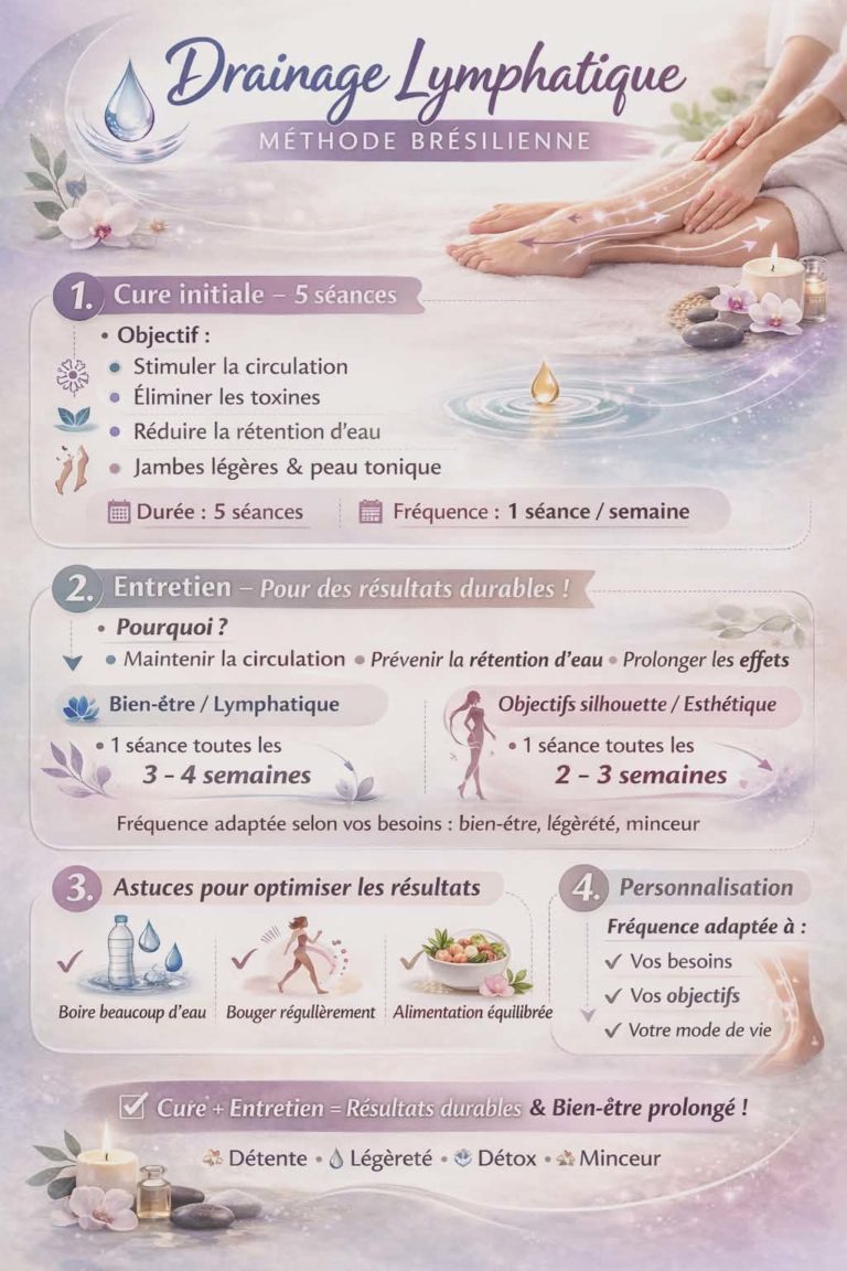 Offrez à votre corps une véritable cure de légèreté et de vitalité grâce au drainage lymphatique méthode brésilienne. Ce massage manuel complet agit en profondeur sur l’ensemble du corps pour stimuler la circulation lymphatique et veineuse, favoriser l’élimination des toxines et sublimer la silhouette.